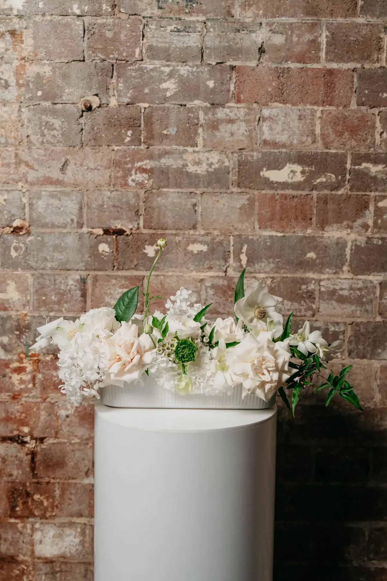 This beauty sits long and low with the florals and foliages spilling over for extra wow.