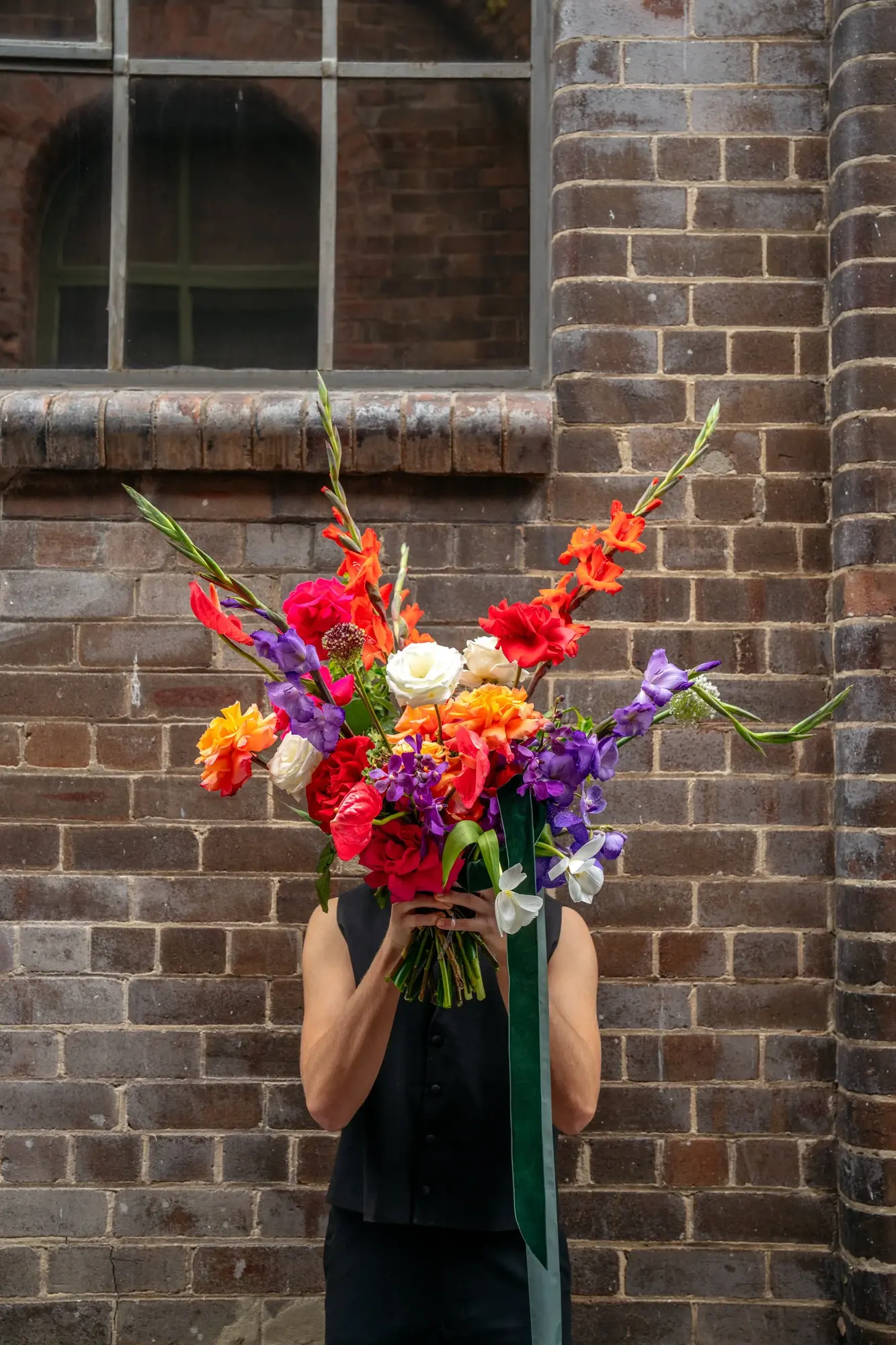 With a mixture of red, orange, purple and a pop of white, this attention-seeking bouquet is harmoniously arranged using the brightest blooms of the season.Please Note: Flowers will change dependent on season and availability. Images are indicative of feel, colour, and mood only. Bountiful size is shown.